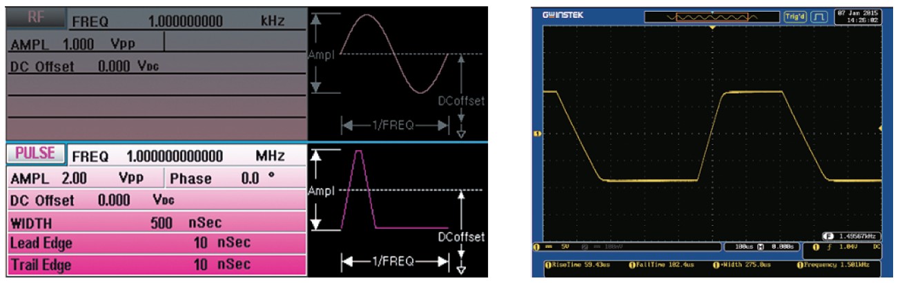 Chaque modèle de la série intègre un générateur d’impulsions dont la fréquence de sortie peut atteindre 25 MHz. Les utilisateurs peuvent configurer la largeur d’impulsion, le rapport cyclique, ainsi que les temps de montée et de descente afin de générer des signaux de déclenchement précis.