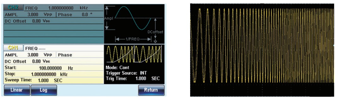 La série prend en charge le balayage de fréquence avec différents modes de fonctionnement, notamment linéaire ou logarithmique. Elle permet également l’utilisation de déclenchements internes, externes ou manuels.